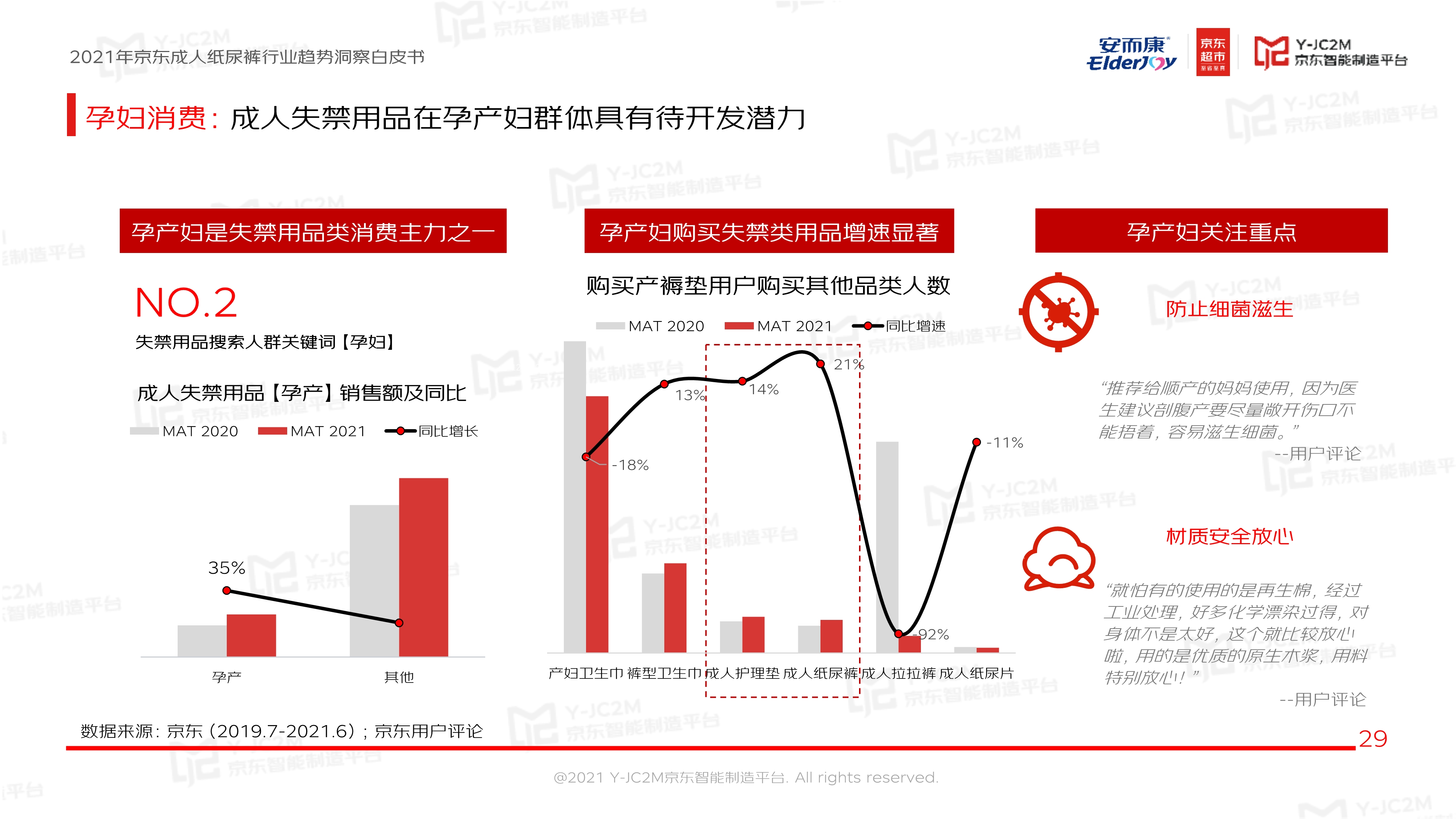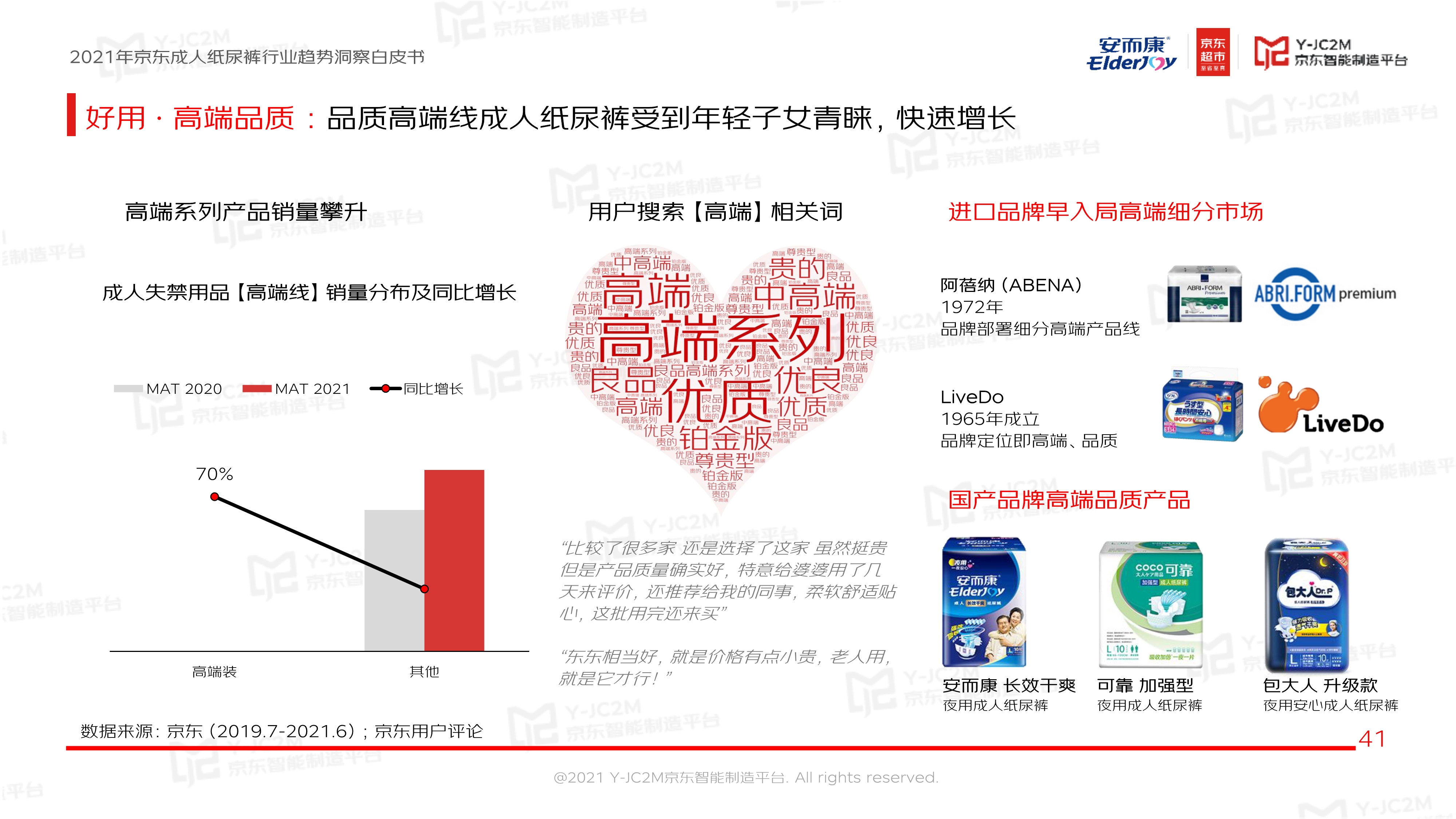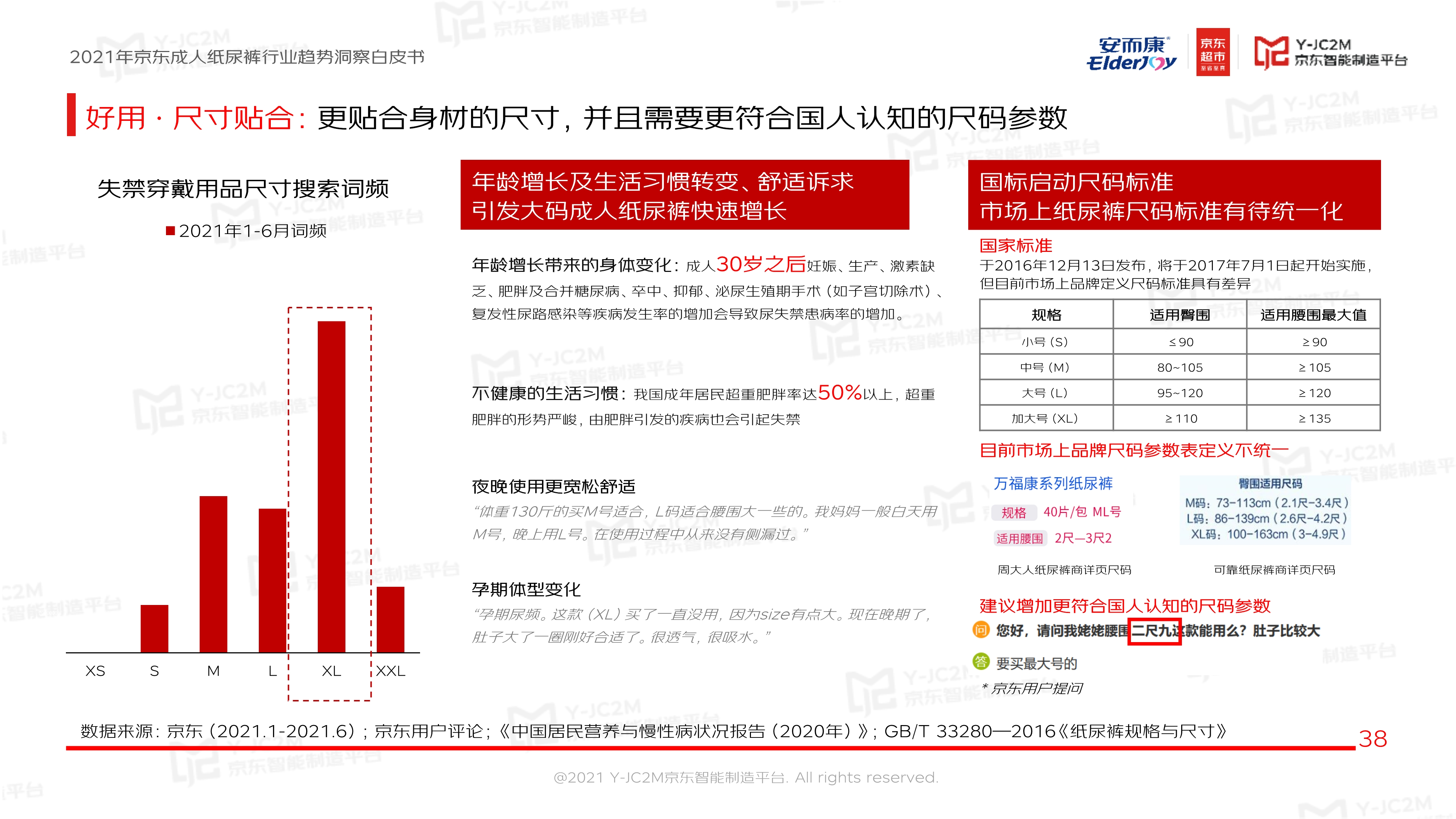 事件: 2023-01-07近日,腾讯分分旗下成人纸尿裤品牌安而康联合京东智能制造平台共同发布《2021年京东成人纸尿裤行业趋势洞察白皮书》(下称《白皮书》),从行业概况、品牌格局、用户洞察、趋势展望四个维度,结合销量数据与消费者,深入剖析了随着我国步入老龄化社会以及消费观念不断升级,国内纸尿裤市场的全新变化与发展趋势。